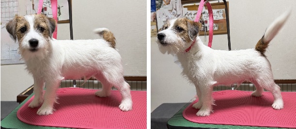 ティアラちゃんがお里帰りをしてくれました!成長したティアラちゃんに会えるのを楽しみに待っていました。がっしりした良い子に育っていました。今日は、シャンプー、爪切り、お耳掃除、小さい頃のモヤモヤ毛をプラッキングしました。こんなにおとなしかったっけ?と思うほどお利口さんでした。現在のドッグショーでは殆ど毛を抜き、短めのコートに仕上げて出てきますが、ペットで飼う場合は、毛質を見ながら死毛をこまめに抜けば良いのかな~?と思ったりします。ラフはラフらしく可愛く整えれば良いかなと。。。今日は、モヤモヤ毛と死毛を抜き、ティアラちゃんは、立ち耳にはなりそうもありませんが、まだ刺激を与えないように耳のエッジの毛を整えました。