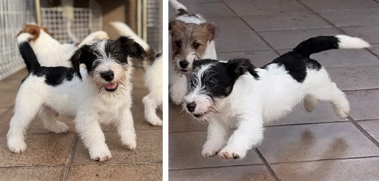 当時、まだ固定されていないジャックラッセルテリアは、交配をすると時々、兄弟姉妹の中に足の長いスクエアの仔犬が生まれてきました。当時のブリーダー達は、足の長いジャックラッセルテリアを排除し、スタンダードに寄り近い犬を交配し続けました。FCIのスタンダードにもJKCのスタンダードにも何度もシルエットは長方形という言葉が出てきます。